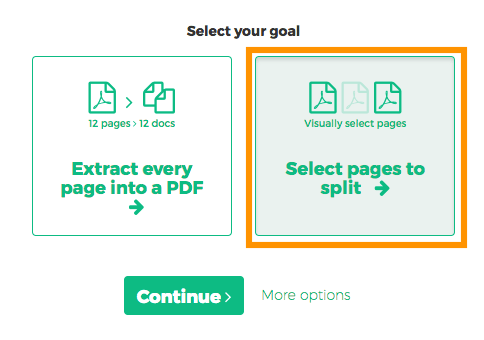 How to visually select PDF pages to split at